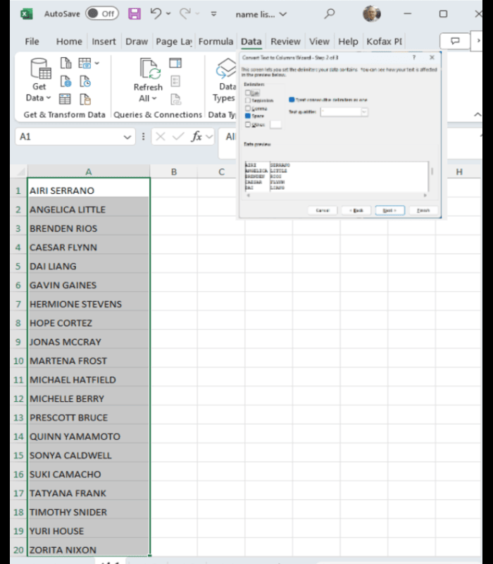 to columns and choose a blank as delimiter