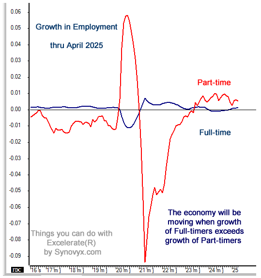 - Part-time job growth, though still exceeding full-time growth, has declined over the last two months.